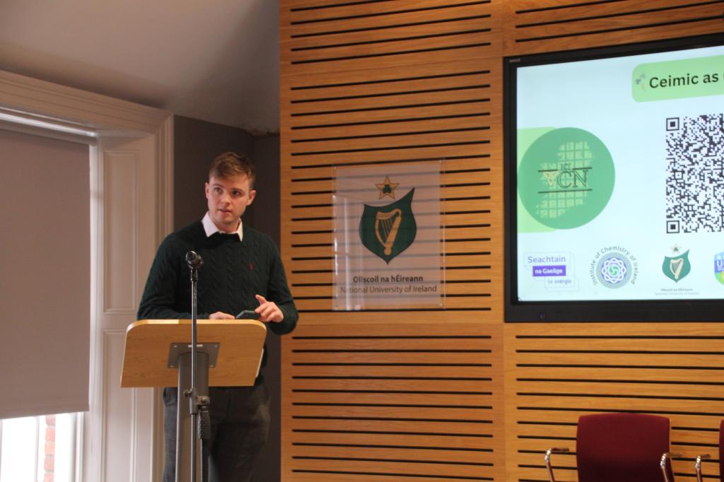 Ceimic as Gaeilge was co-organised by YCN Vice-Chair Cathal Kelly (Queens University Belfast) and Advisor Dr Joseph Byrne (UCD), with support from the rest of the YCN Committee, in particular Chair Seán Byrne. Sincere appreciation also to the team of the National University of Ireland at 49 Merrion Square East who heartily welcomed and supported the event, especially Registrar of the NUI, Dr Patrick O’Leary.